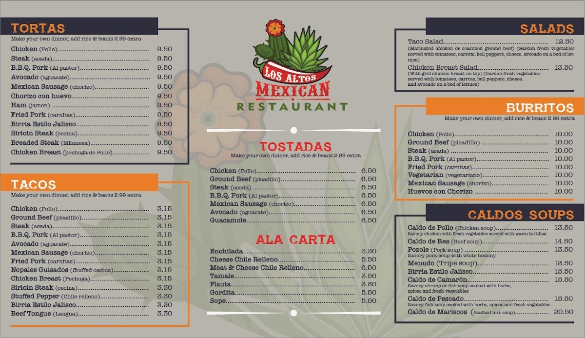 Welcome to Los Altos Mexican Restaurant, a hidden gem located in North Chicago, where authentic Mexican flavors come to life. The menu is a vibrant tapestry of culinary delights sure to satisfy any cravings for comfort food. Start with the Flautas Dinner or indulge in the savory Quesabirrias, with rich broth served on the side that elevates each bite. For the heartier appetite, try the Arrachera El Caporal, featuring succulent marinated steak paired with traditional accompaniments such as nopales and guacamole.